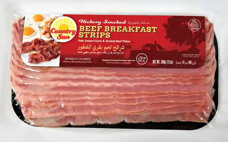 شرائح اللحم البقري الحلال المدخنة من كانتري صن هيكوري المدخنة على الفطور